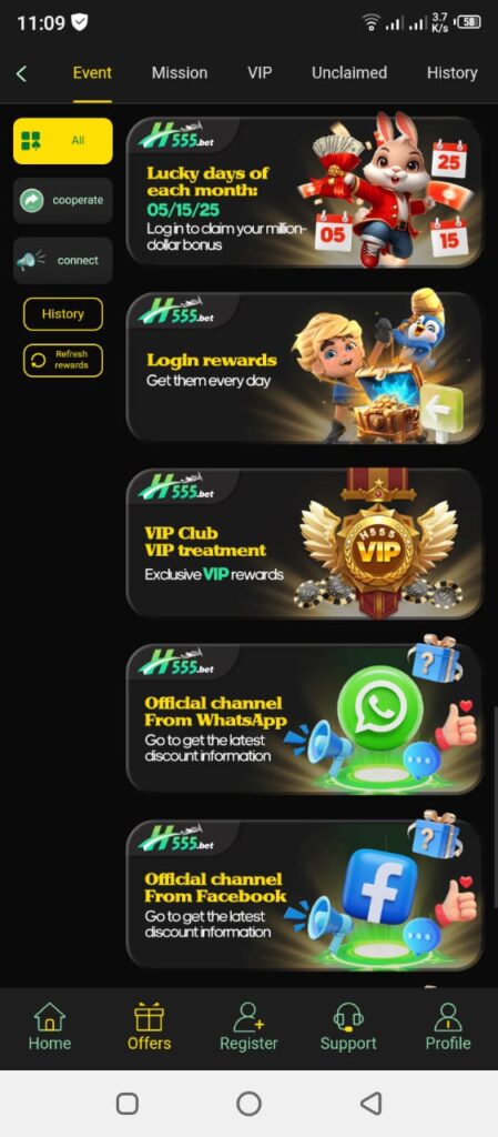 Need help? H555 provides round-the-clock support through chat and calls. Whether it’s account issues, withdrawal help, or gameplay queries, friendly agents are always available.